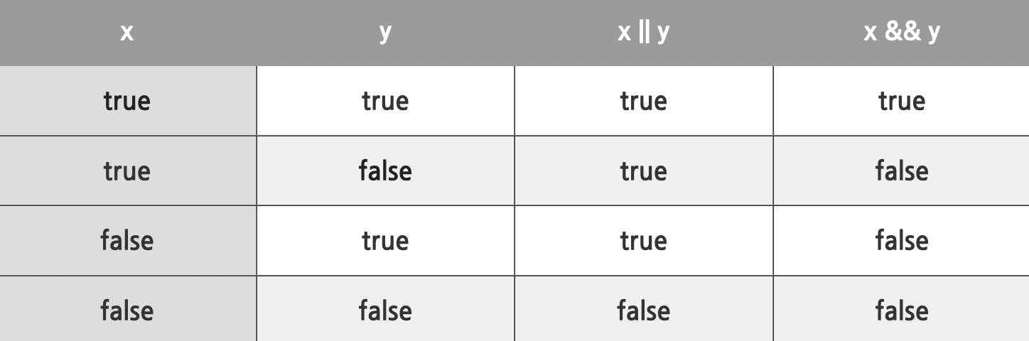 -> 피연산자 모두 true여야 true의 값을 얻는다. 하나라도 false면 false의 값을 얻음