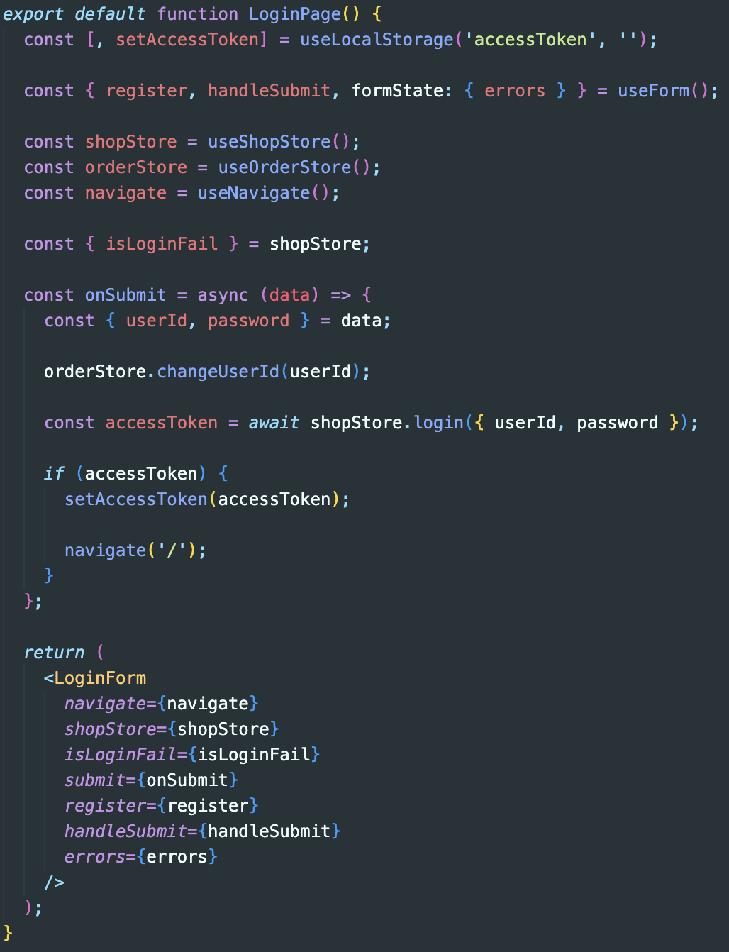 이렇게 리팩터링을 하니 LoginForm을 테스트할 때 모킹을 하지 않아도 전달받는 값들은 jest.mock이나 구체적으로 값을 써줌으로써 간단하게 처리할 수 있었다.