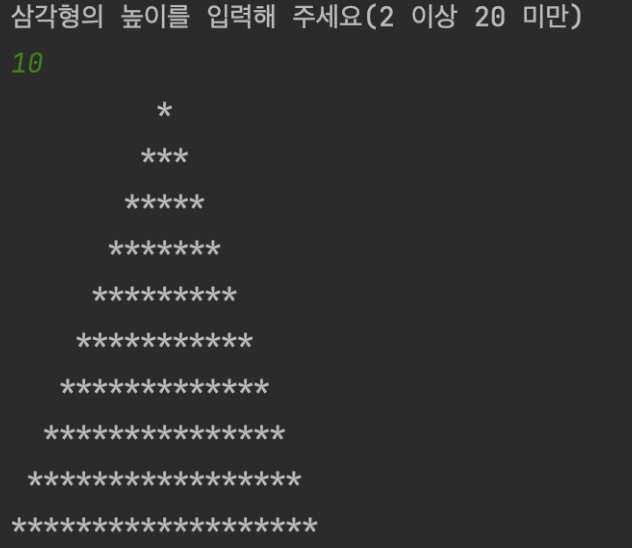 별만 출력하면 삼각형 모양이 자동으로 나올 줄 알았지만 공백도 내가 출력해줘야 삼각형 모양이 나오는 걸 뒤늦게 깨달았다.