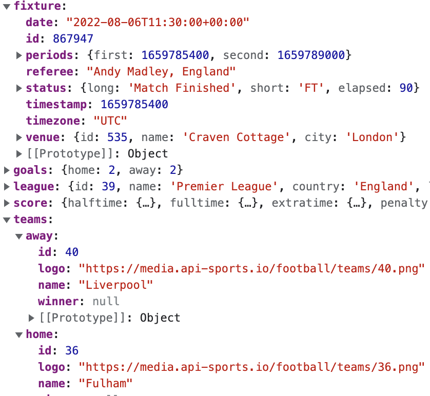 경기 날짜, 경기 결과, 스코어, 경기장 이름, 경기장 위치 심지어 심판 이름까지... 해당 경기에 대한 정보는 모두 가져오는 것을 알 수 있다.