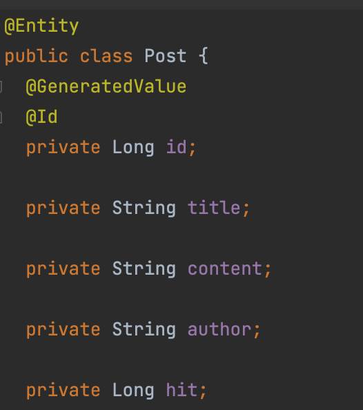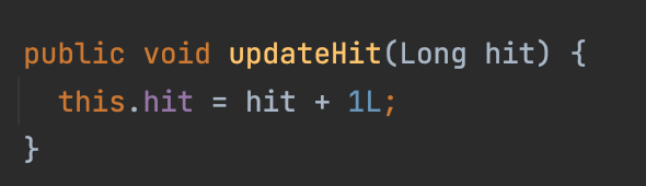 조회수를 위한 hit를 Long 타입으로 설정해주었다. 처음에는 조회수를 나타내는 건 자연수이기 때문에 int타입을 사용했었는데 생각해보니 id값도 자연수인데 Long타입을 사용하고 있었다.