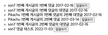 댓글과 대댓글 기능은 이전에 좋아요 기능을 구현하면서 객체 구조 설계를 바꿔놨기 때문에 생각보다 쉽게 구현할 수 있었다.