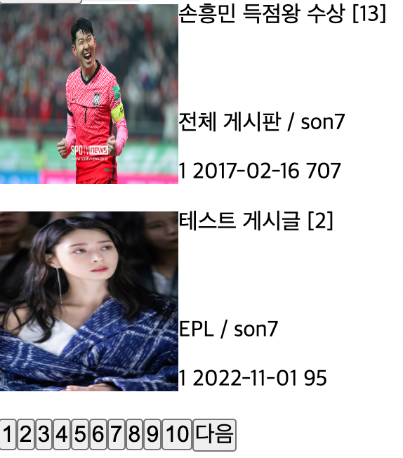 한 화면에 게시글은 총 10개만 출력이 되고 넘어갈 시 다음 페이지 버튼이 생성된다.