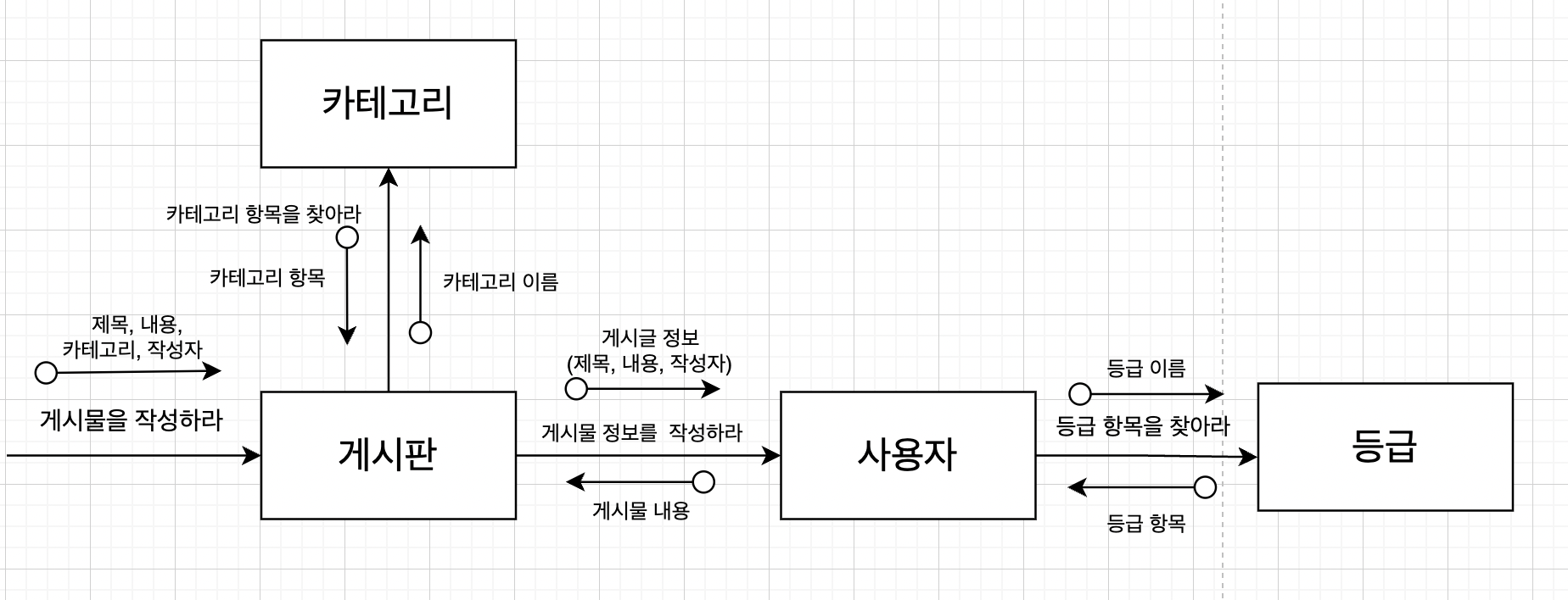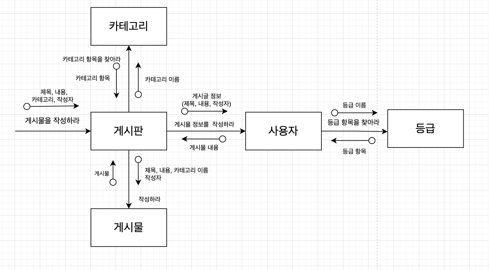 사용자는 등급 항목 객체 하나를 전달받아 자신의 정보와 함께 게시판에게 게시물을 작성해달라고 요청한다. 게시판이 작성하는 게시물 역시 객체로 볼 수 있다.