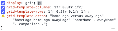 뭐가 잘못된 건지 개발자 도구를 켜서 grid를 적용해준 부분을 보는데 grid-template-areas가 적용이 안된 것을 확인할 수 있었다..