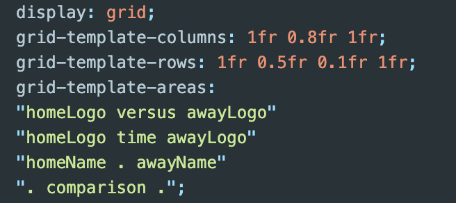 이번 경기 일정 페이지는 css도 같이 하면서 작업하려고 아래와 같이 배치하기 위해 grid를 이용해 아래와 같이 3 * 3 형식으로 배치를 하려고 했다.