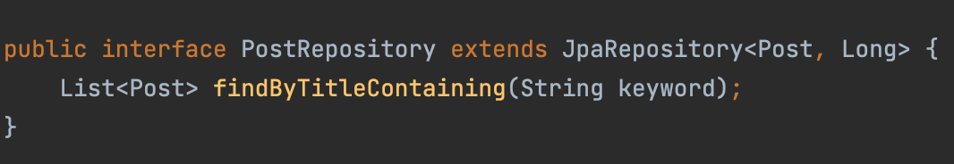 List<Post> posts = postRepository.findByTitleContaining(keyword);