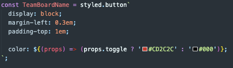 TeamBoardName toggle이 true이면 글씨 색을 빨간색으로 변경하고 아니면 검은색을 사용하는 것이다.
