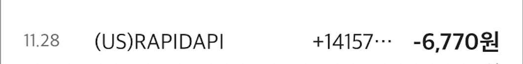 자동이체 해놓은게 없는데 돈이 빠져나가 확인해보니 RAPIDAPI 에서 자동으로 6,770원을 뺏어(?)갔다..