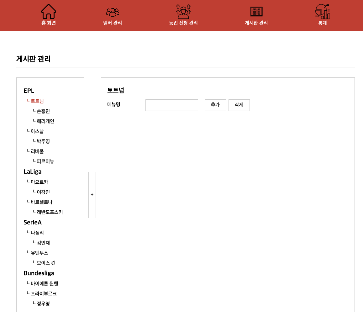 관리자 계정으로 게시판 및 사용자 관리 기능