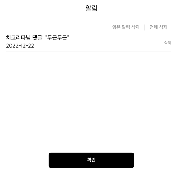 - 자신이 작성한 게시글에 다른 사용자가 댓글을 작성할 시 실시간으로 댓글 알림을 받을 수 있는 기능이다.