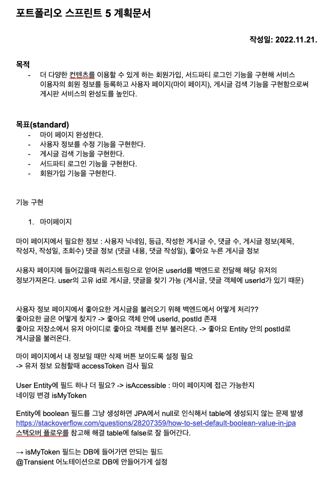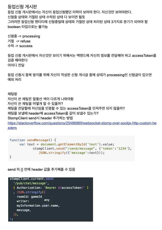 실제로 프로젝트 5주 차 이후 동료가 기록하는 방식인 구글 문서를 통해 더 구체적으로 기록하려고 노력한 흔적들이다.