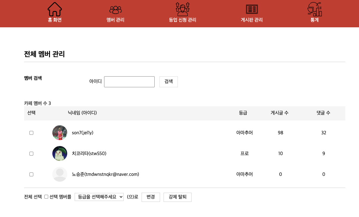 - 선택한 멤버 등급 변경 및 강제 탈퇴 기능