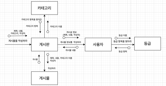처음에는 협력을 설계한다는 것이 무슨 말인지 이해하기가 쉽지 않았지만 책을 따라 하면서 직접 프로젝트에 적용해보니까 아래 사진처럼 게시물을 작성하기 위해 객체들이 서로 메시지를 통해 협력하는 모습을 그려볼 수 있었다.