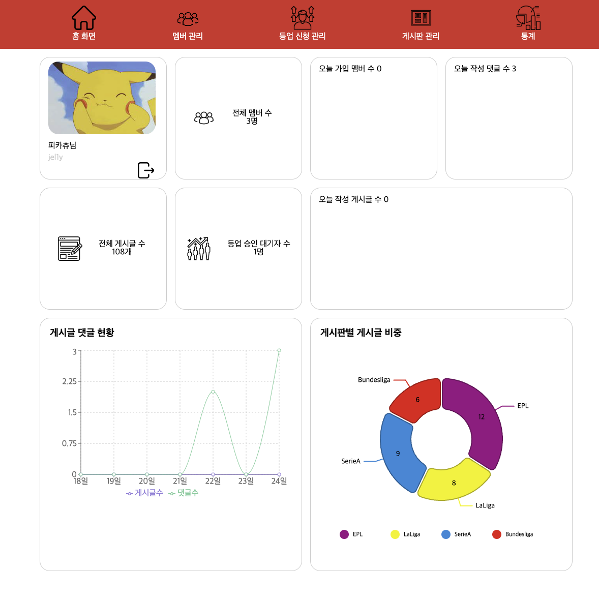 - 전체 멤버 수, 게시글 수, 등업 승인 대기자 수 확인