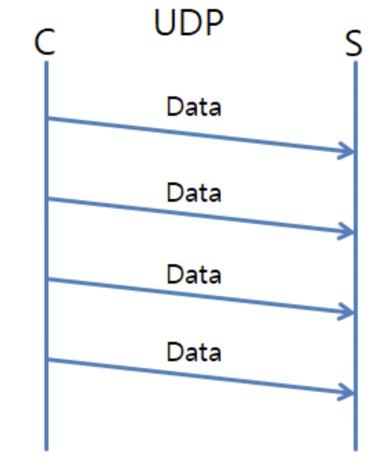 UDP는 TCP와 달리 비연결지향 통신이다. TCP처럼 데이터의 신뢰성을 신경쓰지 않고 데이터를 빨리 보내고 싶을 때는 UDP(User Datagram Protocol)를 사용한다.