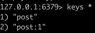 위에 test클래스 처럼 post를 저장하고 redis-cli에서 key * 명령어를 통해 모든 키를 조회해보면 post가 저장된걸 아래와 같이 확인할 수 있다.