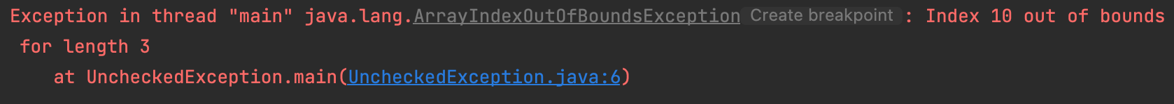 우리가 대표적으로 접할 수 있는 에러인 NullPointerException, ArrayIndexOutOfBoundsException 에러가 Unchecked Exception에 해당한다.