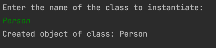 다음 알아볼 리플렉션의 기능은 컴파일 시점에 클래스의 이름을 모르더라도 런타임 시점에 클래스의 객체를 생성할 수 있도록 하는 기능이다. 즉 코드를 작성하는 시점에는 생성할 클래스의 이름을 몰라도 되고 런타임 시점에 사용자의 입력이나 서비스에 따라 결정이 된다.