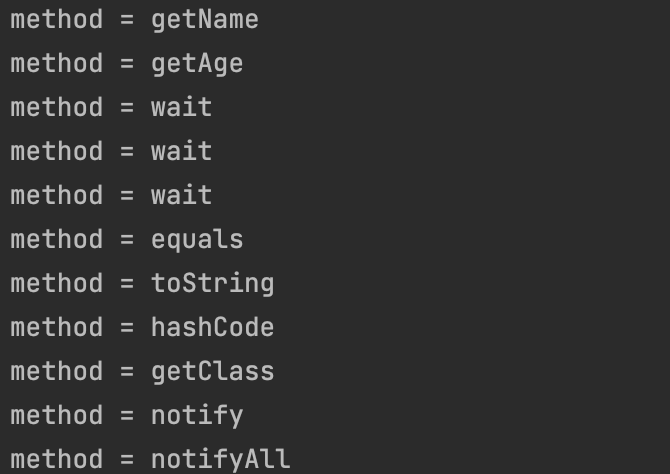 위의 코드에서 Person 객체를 파라미터로 전달받은 printPersonDetails() 메서드를 생성한다. 이후 리플렉션을 사용해 Person 객체 안에 존재하는 필드 값(이름과 나이)을 출력하기 위함이다.