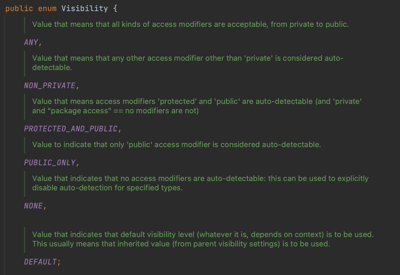 Visibility에는 ANY값 외에도 enum 클래스로 정의된게 있다.