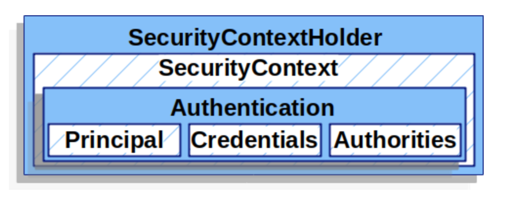 SecurityContextHolder의 구조를 사진으로 보면 SecurityContext를 감싸고 있고 SecurityContext 안에 Authentication(인증)이 저장되어 있다.