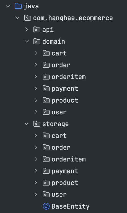 이커머스 서버의 패키지 구조는 아래 사진과 같이 구성했다.