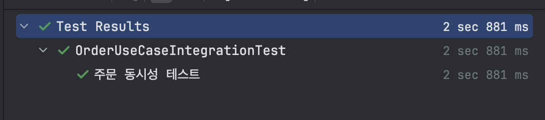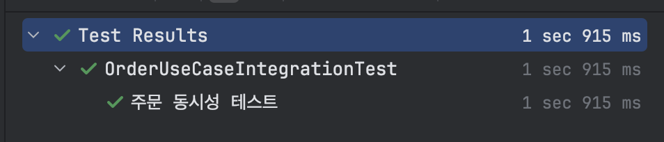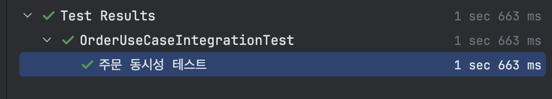 이후 기존 주문 동시성 테스트를 실행해 보면