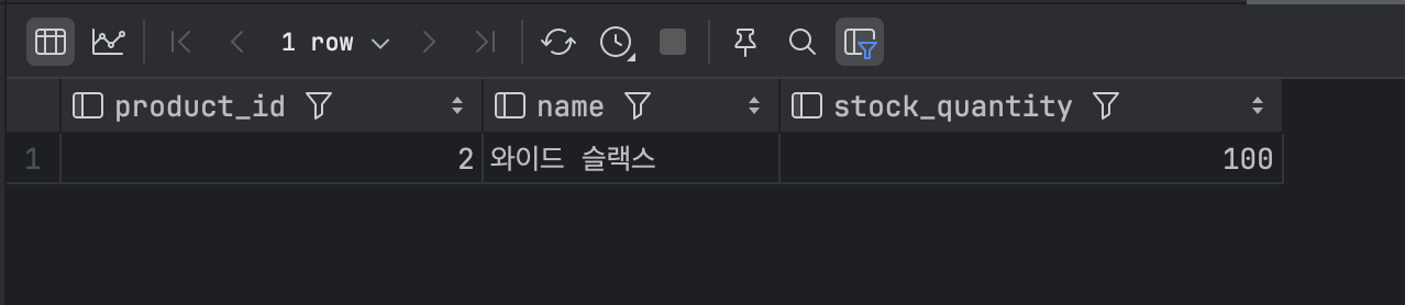 정확히 100개의 스레드에서 1개씩 상품 재고를 차감한 것을 확인할 수 있습니다.