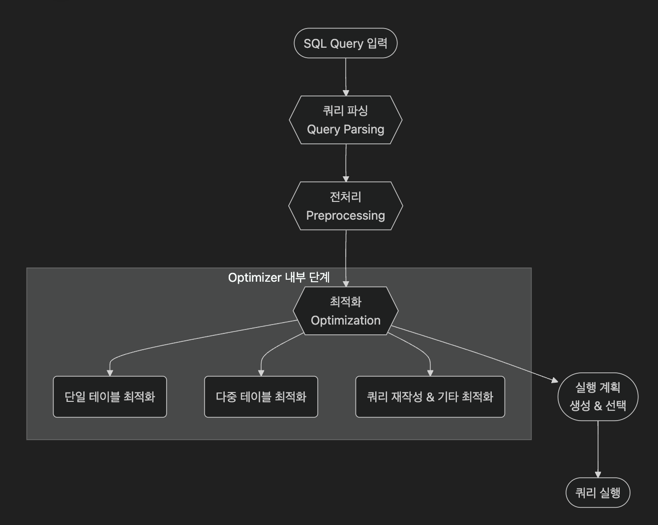 간단히 Optimizer는 사용자가 작성한 SQL 쿼리를 분석하여 실행 비용이 가장 낮은(또는 상대적으로 효율적인) 실행 계획을 선택하는 역할을 맡는다.