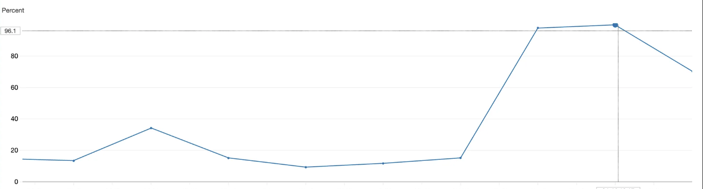 하지만, CPU 사용률을 확인했을 때 사용률이 99%까지 치솟아 있는 것을 발견했습니다.