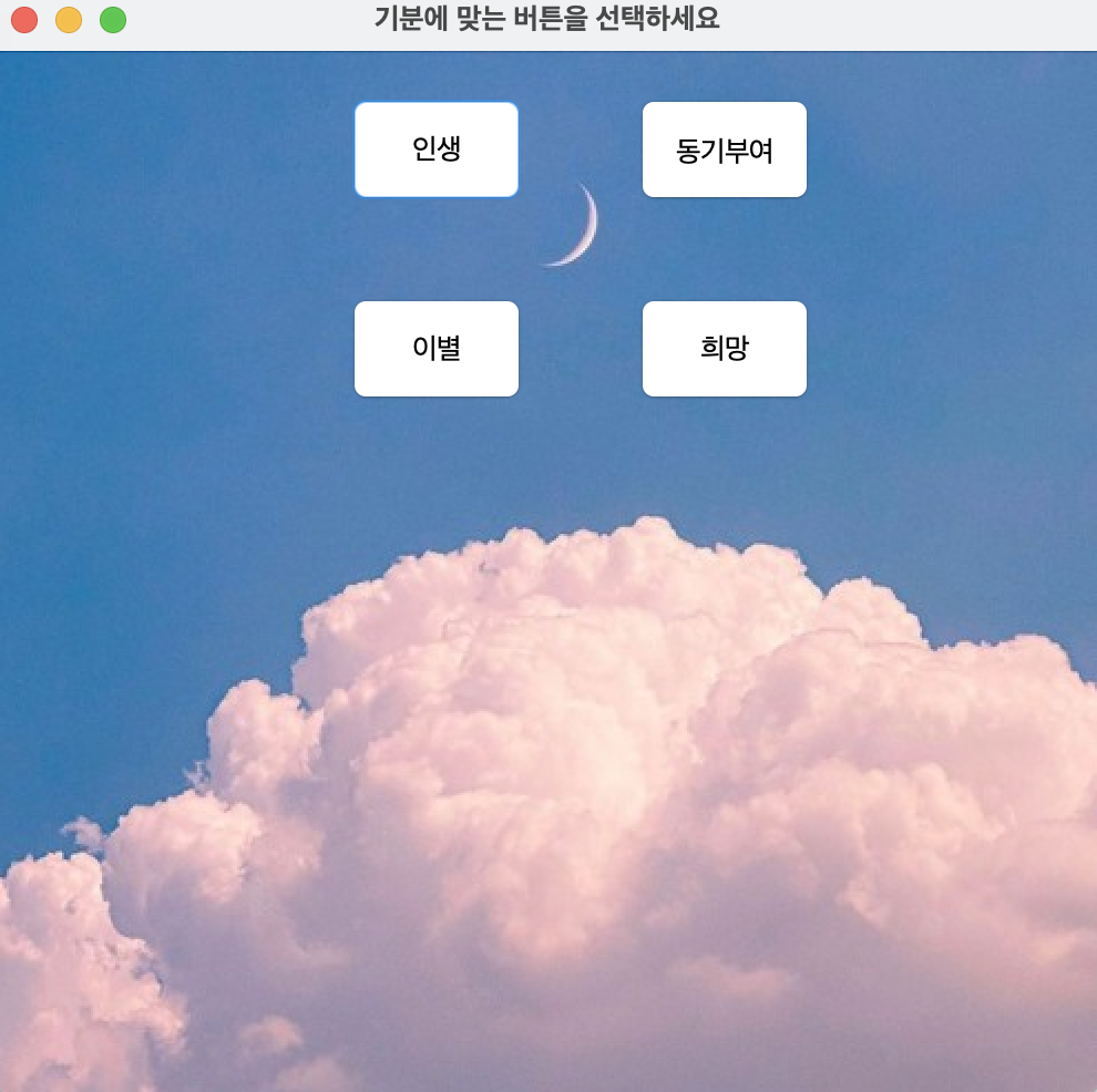 오늘 피드백받은 부분 중 각 창들이 회색 배경에 버튼이랑 글만 들어있어서 밋밋하다는 피드백을 받아서 이미지를 한번 넣어 봤다.