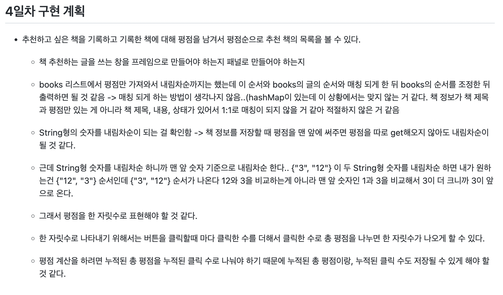 오늘은 드디어! 이틀 동안 고민하고 고민하던 책의 평점순에 따라 책 목록을 보여주는 기능을 구현했다.