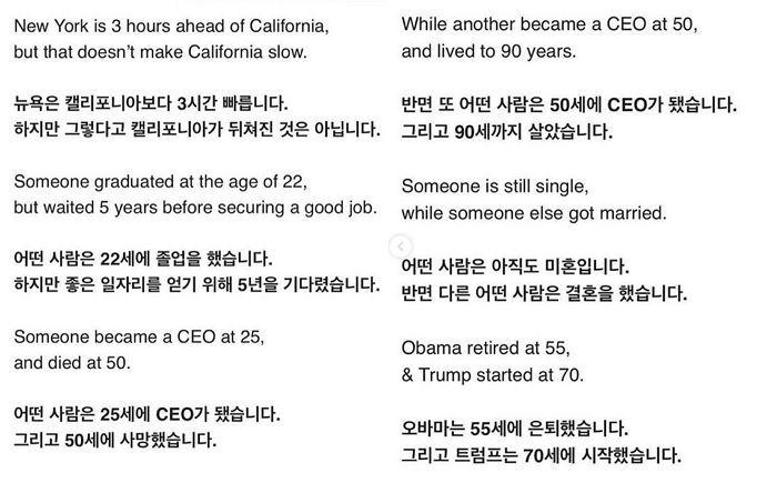 에일리가 이전에 올린 글귀가 생각나서 찾아봤는데 남들보다 더 뒤처져있다고 생각하는 나에게 적절한 글귀였다.